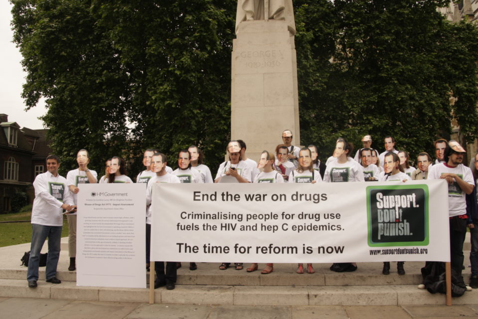 The London event, coordinated by Students for Sensible Drug Policy and the International Drug Policy Consortium, gathered around 70 people wearing “Support. Don’t Punish” T-shirts and Richard Nixon masks near the Parliament and Westminster Abbey, to demonstrate against the war on drugs. Caroline Lucas, Member of Parliament for Brighton Pavilion, joined the demonstration and called for the decriminalisation of drug use and for an independent review of the effectiveness of the UK Misuse of Drugs Act 1971. The demonstration was animated with drums music, attracting the attention of passers-by and MP for Cambridge Julian Huppert, who showed support for the campaign.